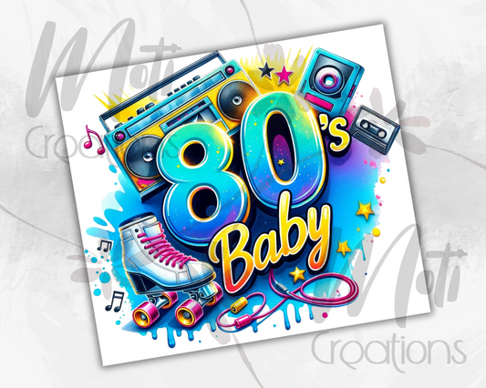 80's Baby Skateboard Seamless Design - Shirt, Mouse Pad, Bag, Pillow, Cushion, Glass, Jar, Apparel - PNG Sublimation Design UVTDF Instant Download - DIGITAL ONLY